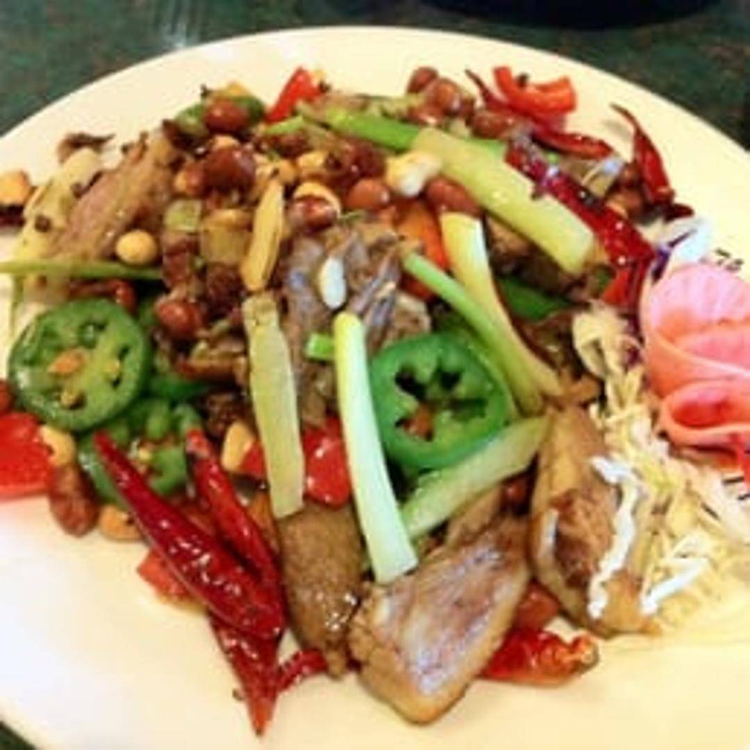 A half or whole duck, marinated and smoked with tea leaves for a distinctive smoky flavor and tender texture. The skin is typically crisp and the meat succulent. Served sliced, often with steamed buns or other accompaniments.
