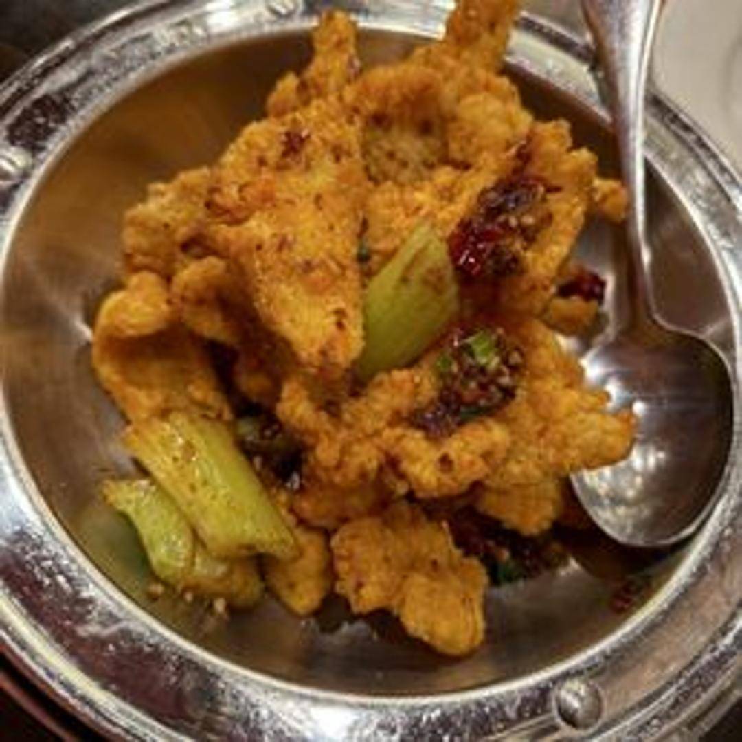 Crispy fried fish fillets prepared in the authentic Szechuan style, featuring a blend of spicy, numbing, and aromatic flavors. This dish incorporates chili peppers, Sichuan peppercorns, and other traditional Szechuan spices. Served with a flavorful sauce and often includes vegetables.