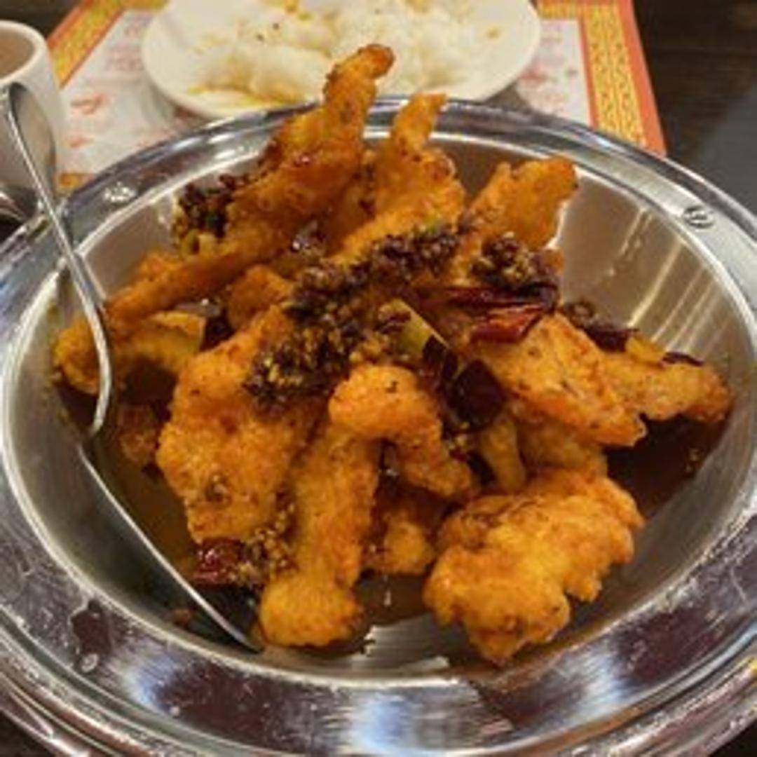 Crispy, dry-fried small fish seasoned with a generous amount of dried chili peppers, Sichuan peppercorns, and other aromatic spices. Expect a highly flavorful, spicy, and crunchy snack or appetizer. The 'dry' preparation method intensifies the flavors and creates a unique texture.