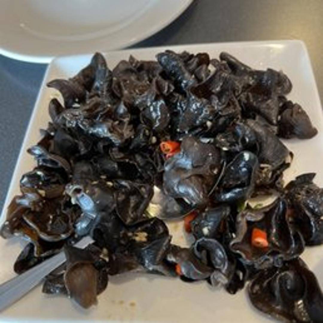 Thinly sliced wood ear mushrooms tossed in a vibrant and spicy sauce. Features a combination of chili oil, garlic, vinegar, and other seasonings for a flavorful and refreshing appetizer.