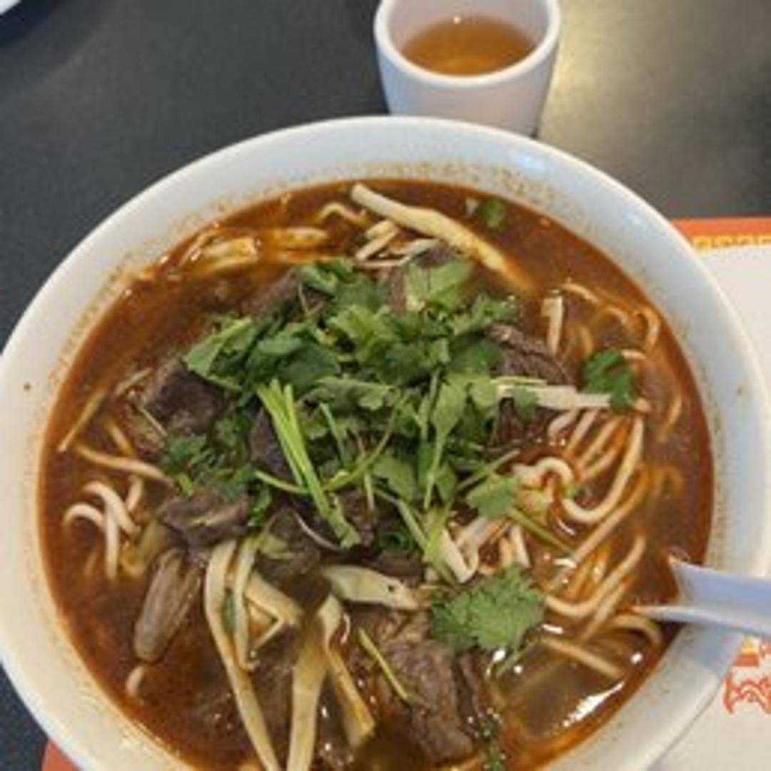A hearty soup featuring tender slices of beef, wheat noodles, and flavorful broth. Often garnished with scallions, cilantro, and pickled vegetables. Seasoned with traditional Chinese spices and aromatics.