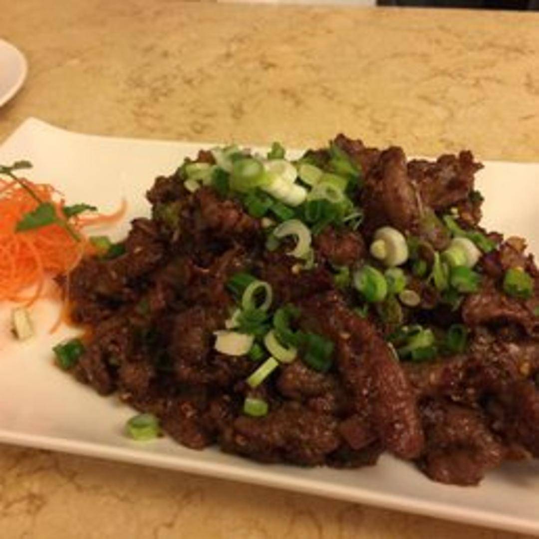 Experience the bold flavors of Cumin Beef, a savory Sichuan stir-fry featuring tender slices of beef expertly wok-fried with a generous blend of ground cumin, dried red chilies, and often bell peppers or onions. This dish is celebrated for its distinctive earthy and pungent cumin aroma, complemented by a spicy kick and the rich, savory depth of the beef.