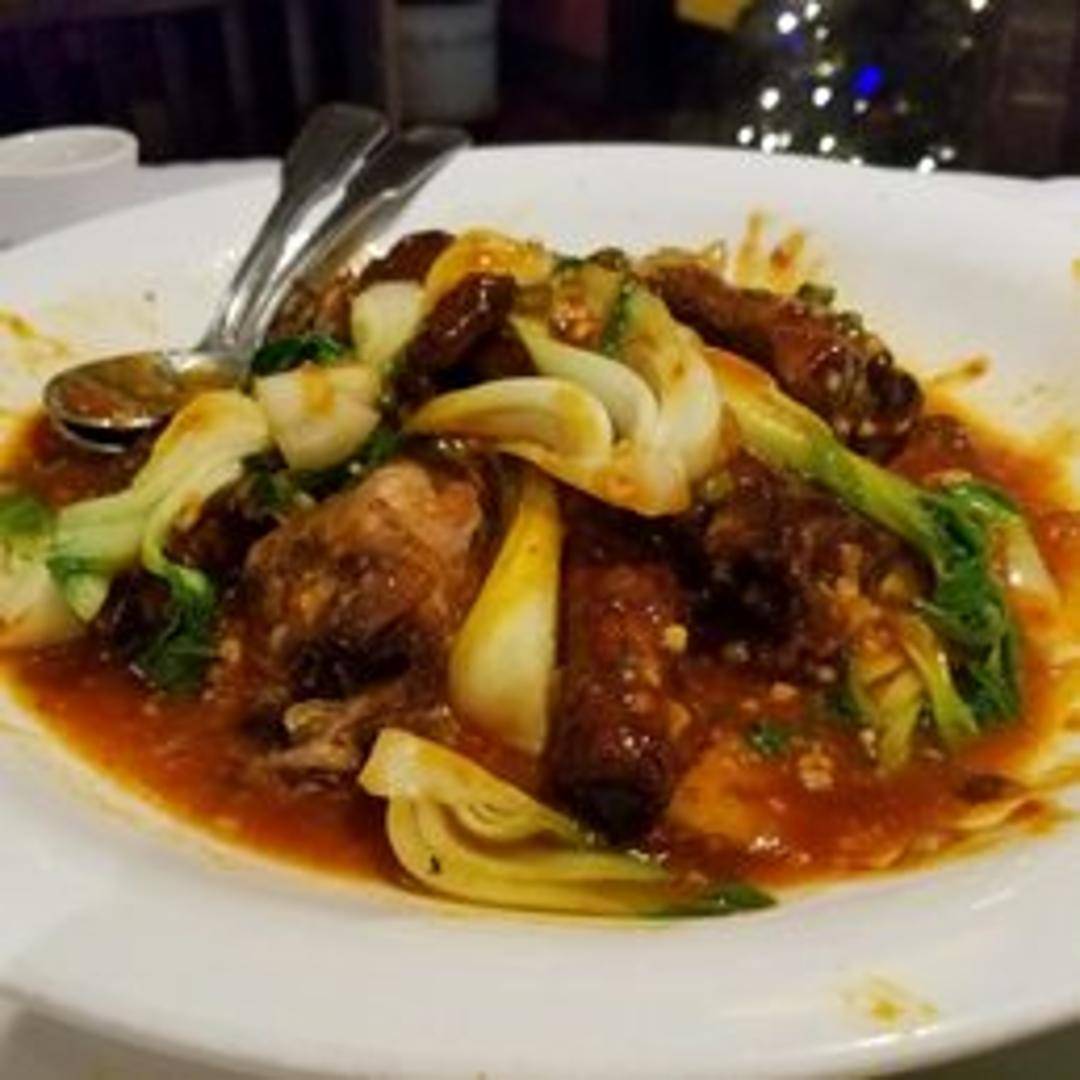Slow-braised pork shoulder seasoned with a complex blend of twenty Sichuan spices. Expect a melt-in-your-mouth texture and a rich, deeply flavorful, and slightly spicy taste. Garnished with scallions and sesame seeds for a fragrant finish.