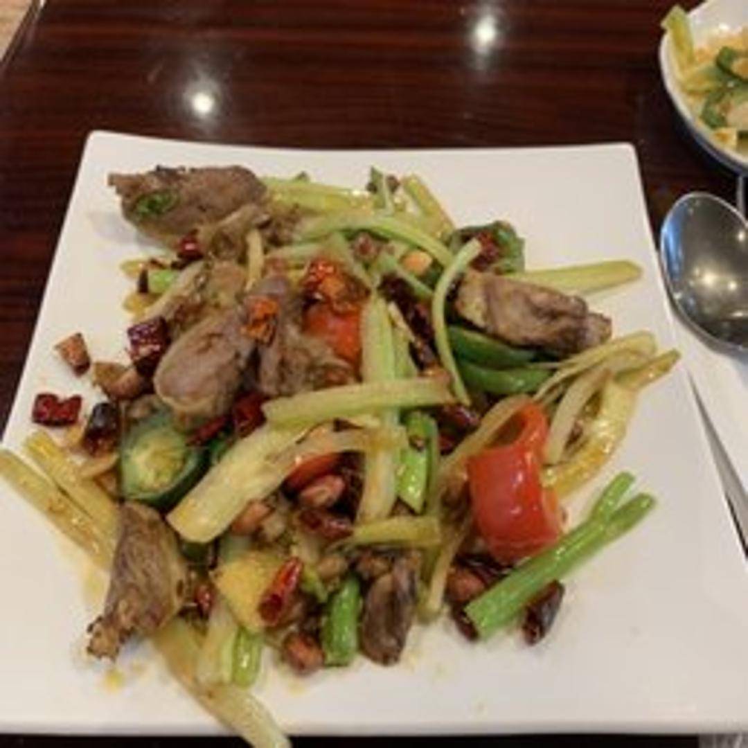 Duck marinated with spices and then smoked with tea leaves, resulting in a uniquely flavored and aromatic crispy skin and tender meat. Served sliced, often with steamed buns or pancakes for wrapping.