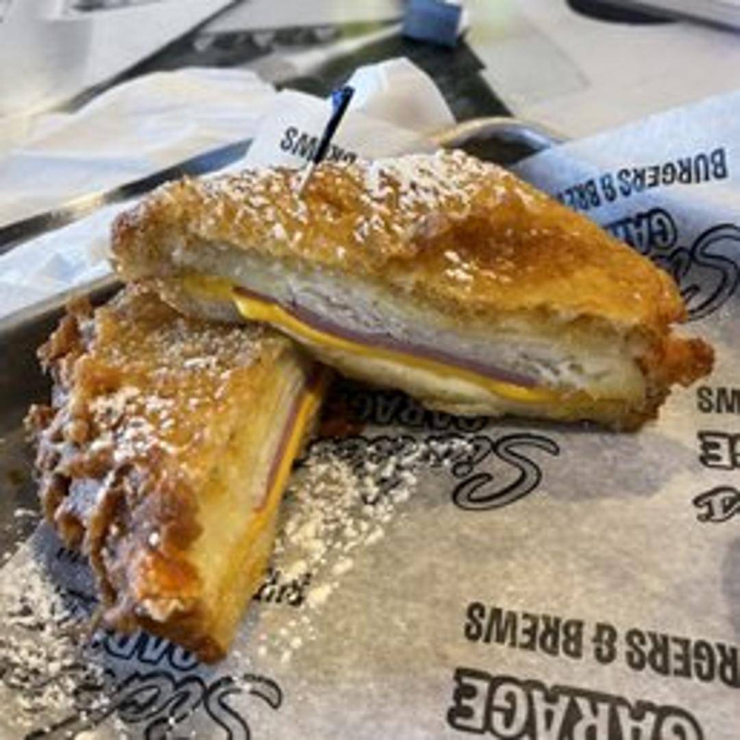 Ham, turkey, and Swiss cheese layered between slices of French toast, battered and deep-fried to golden perfection. Dusted with powdered sugar and served with a side of jam for dipping.