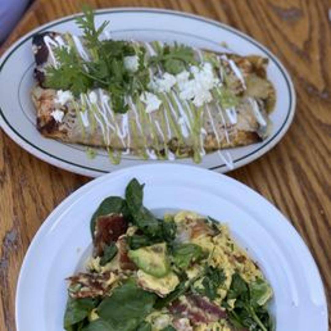 A vibrant and flavorful scramble featuring a medley of fresh seasonal vegetables and fluffy eggs. Served with your choice of toast and a side of fresh fruit.