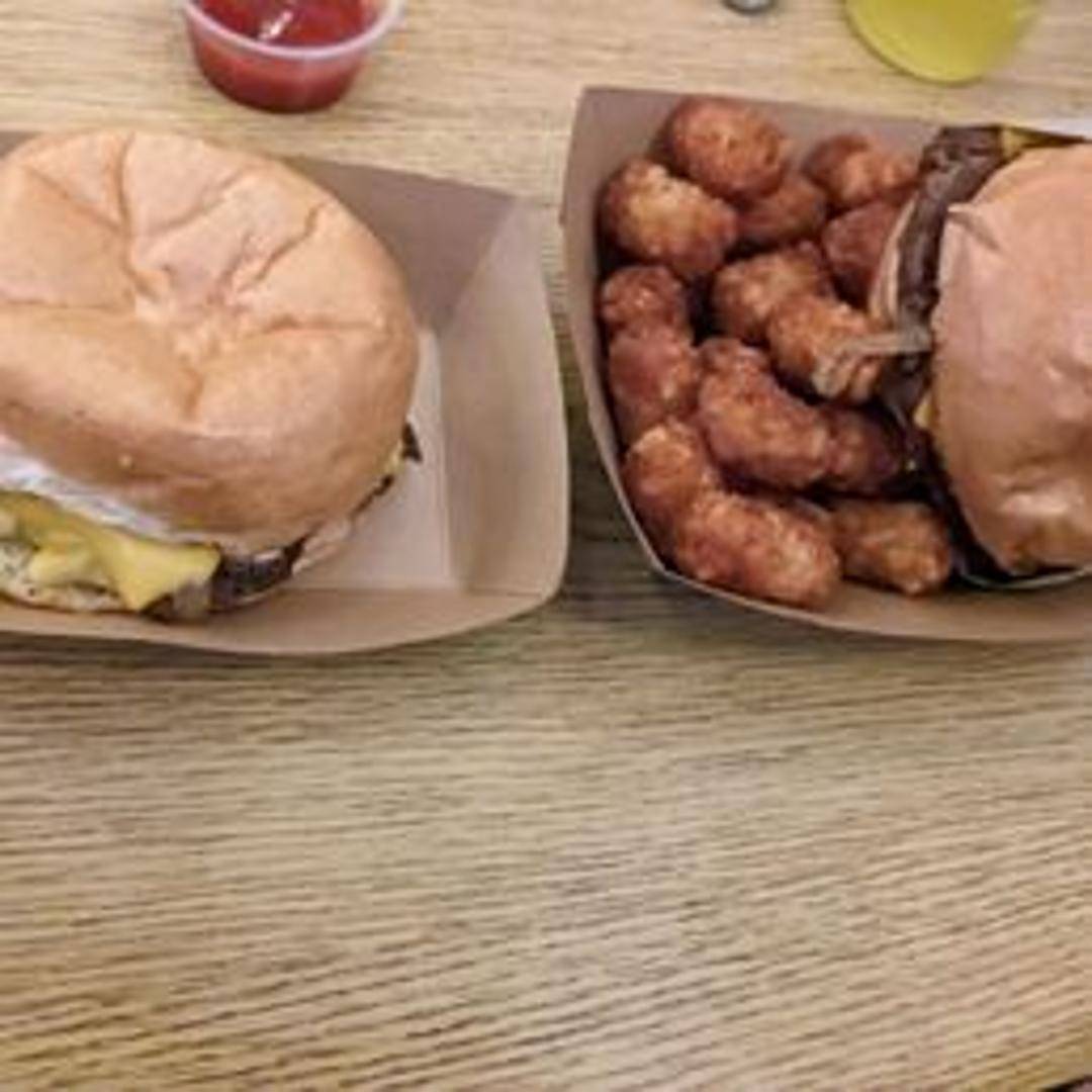 A hearty plant-based burger with lettuce, tomato, onion, and vegan mayo on a toasted bun.