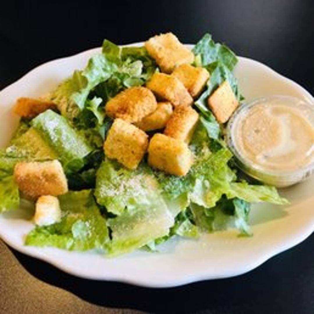 Crisp romaine lettuce tossed in creamy Caesar dressing with grilled chicken, parmesan cheese, and crunchy croutons.