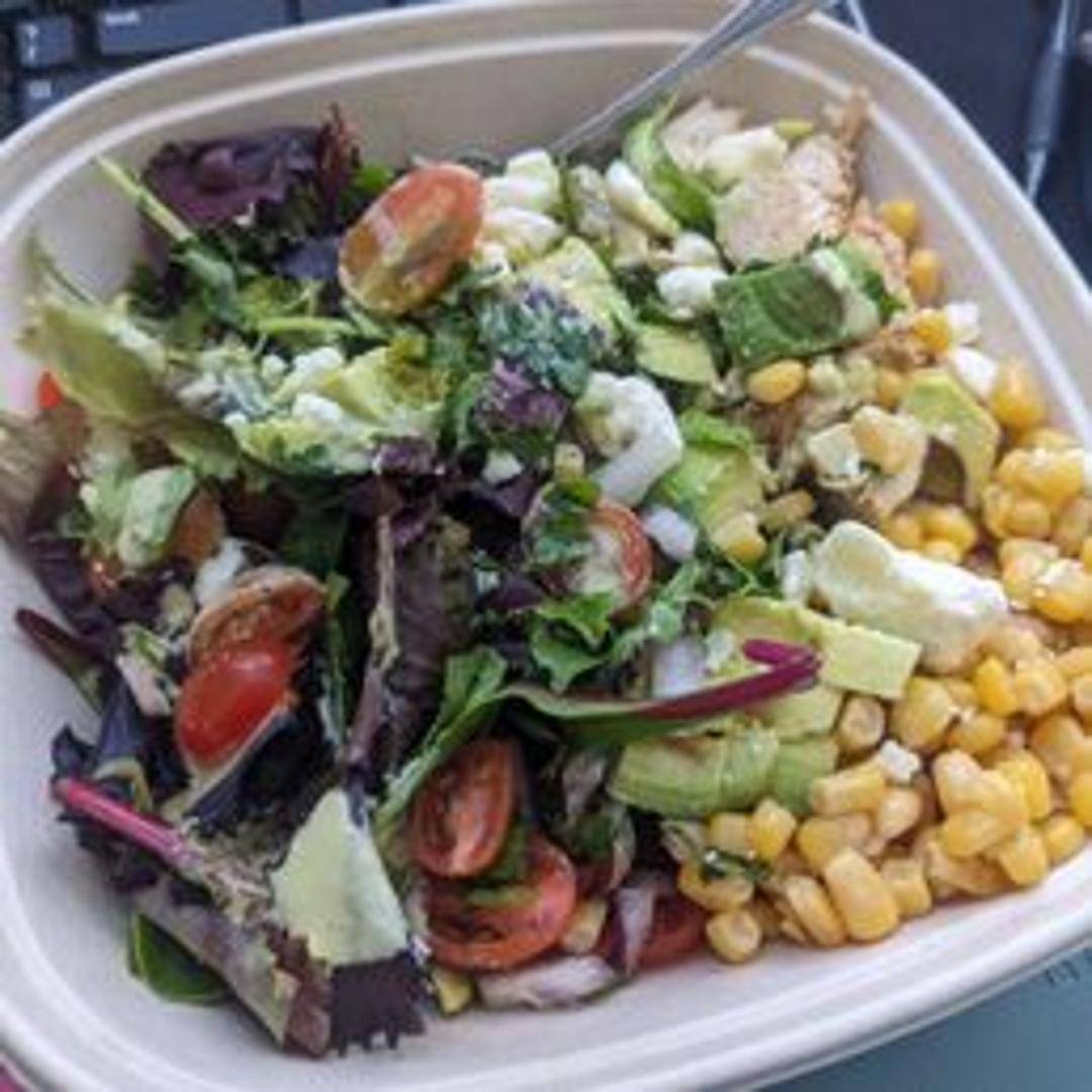 A vibrant and refreshing salad featuring mixed greens, seasonal berries, crumbled feta cheese, toasted almonds, and a light vinaigrette dressing.