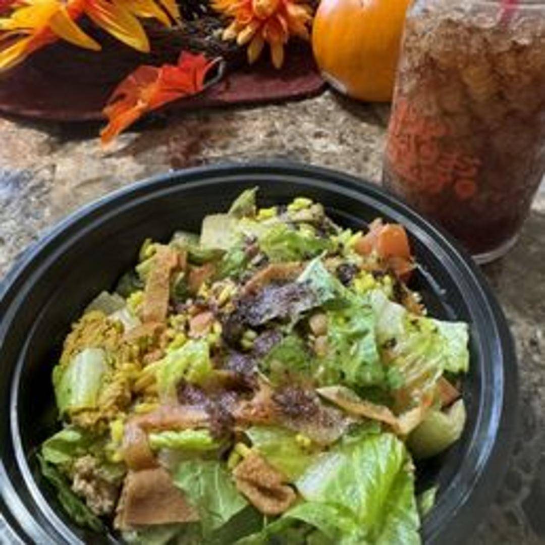 A vibrant Levantine salad made with fresh romaine lettuce, tomatoes, cucumbers, bell peppers, red onions, and radish. Tossed with toasted pita bread for a satisfying crunch, and dressed in a tangy sumac vinaigrette with herbs like mint and parsley.