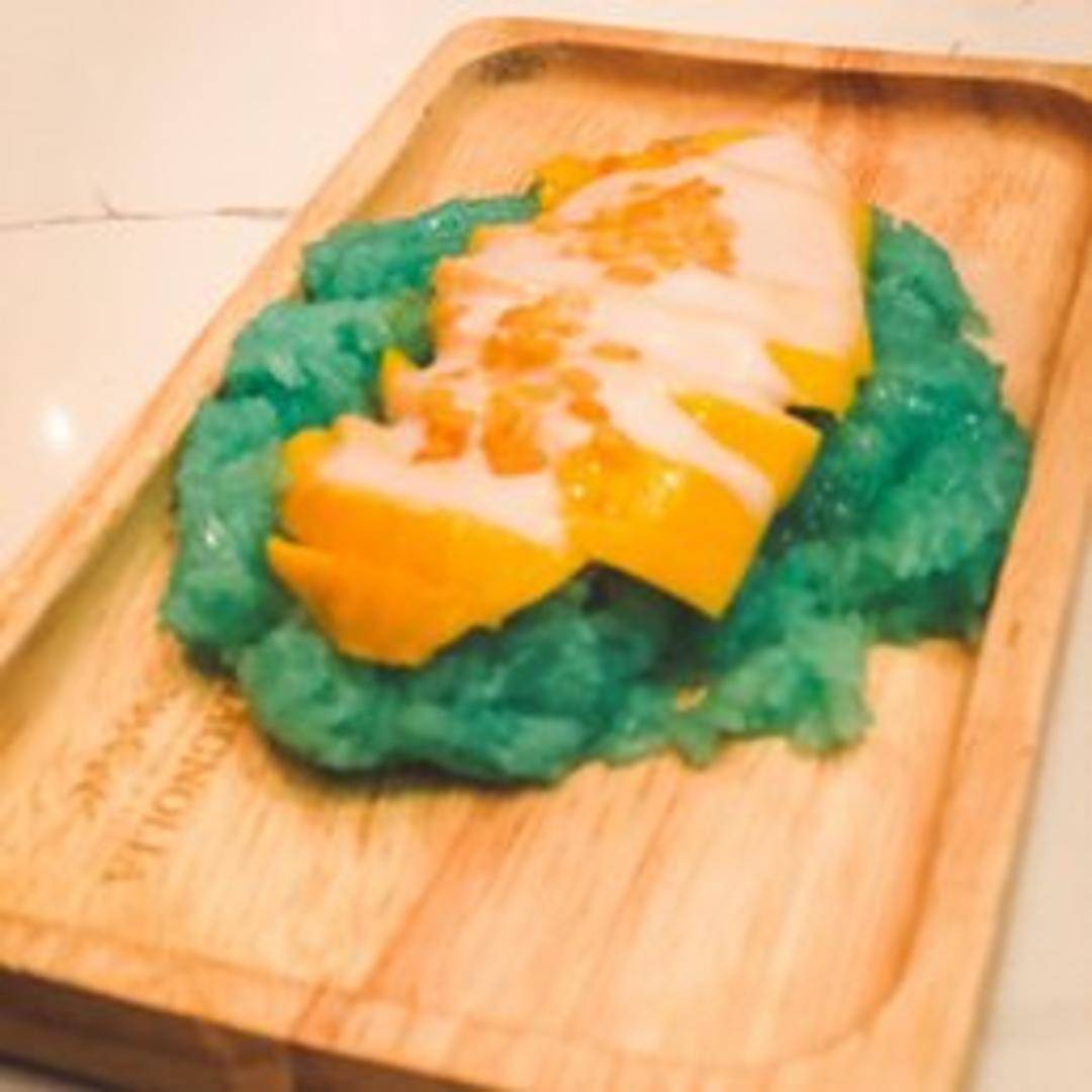 A beloved and quintessential Thai dessert, featuring slices of perfectly ripened, sweet, and juicy mango paired with warm, subtly sweetened sticky rice. This delightful treat is generously drizzled with a rich, velvety coconut milk sauce, offering a harmonious blend of creamy, fruity, and comforting textures and flavors that provide a refreshing and satisfying conclusion to any meal.