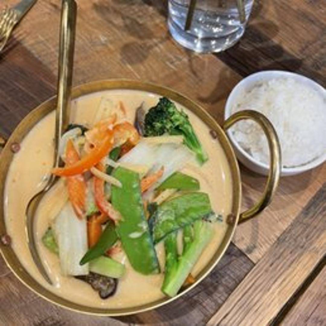 Experience the vibrant flavors of our authentic Thai Red Curry. This classic dish features a rich and creamy coconut milk base infused with a bold red chili paste, tender bamboo shoots, crisp bell peppers, and fresh basil leaves. Its aromatic profile delivers a harmonious balance of savory, subtly sweet, and medium spicy notes, making it a beloved choice for a truly traditional Thai culinary journey.