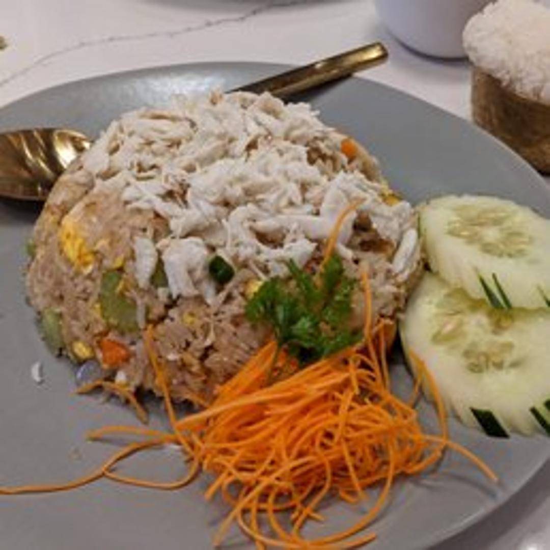 Savor our exquisite Crab Fried Rice, a beloved classic prepared with fragrant jasmine rice stir-fried to perfection. Generous portions of succulent, flaky crab meat are expertly combined with scrambled egg, fresh garlic, onions, and spring onions. Lightly seasoned with traditional Thai spices and sauces, this dish offers a delicate yet rich flavor, a true seafood lover's delight.