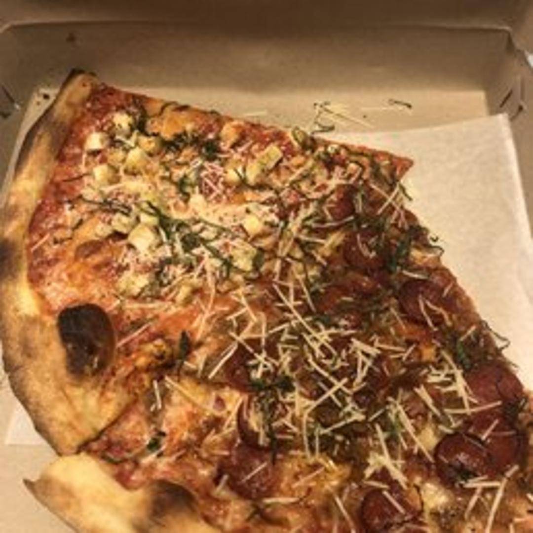 Pizza featuring breaded chicken cutlets, marinara sauce, and melted mozzarella cheese.