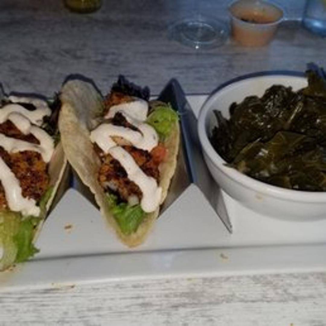 Two flour tortillas filled with grilled or fried shrimp (your choice), shredded cabbage, pico de gallo, and a creamy cilantro-lime sauce. Served with a side of chips and salsa.
