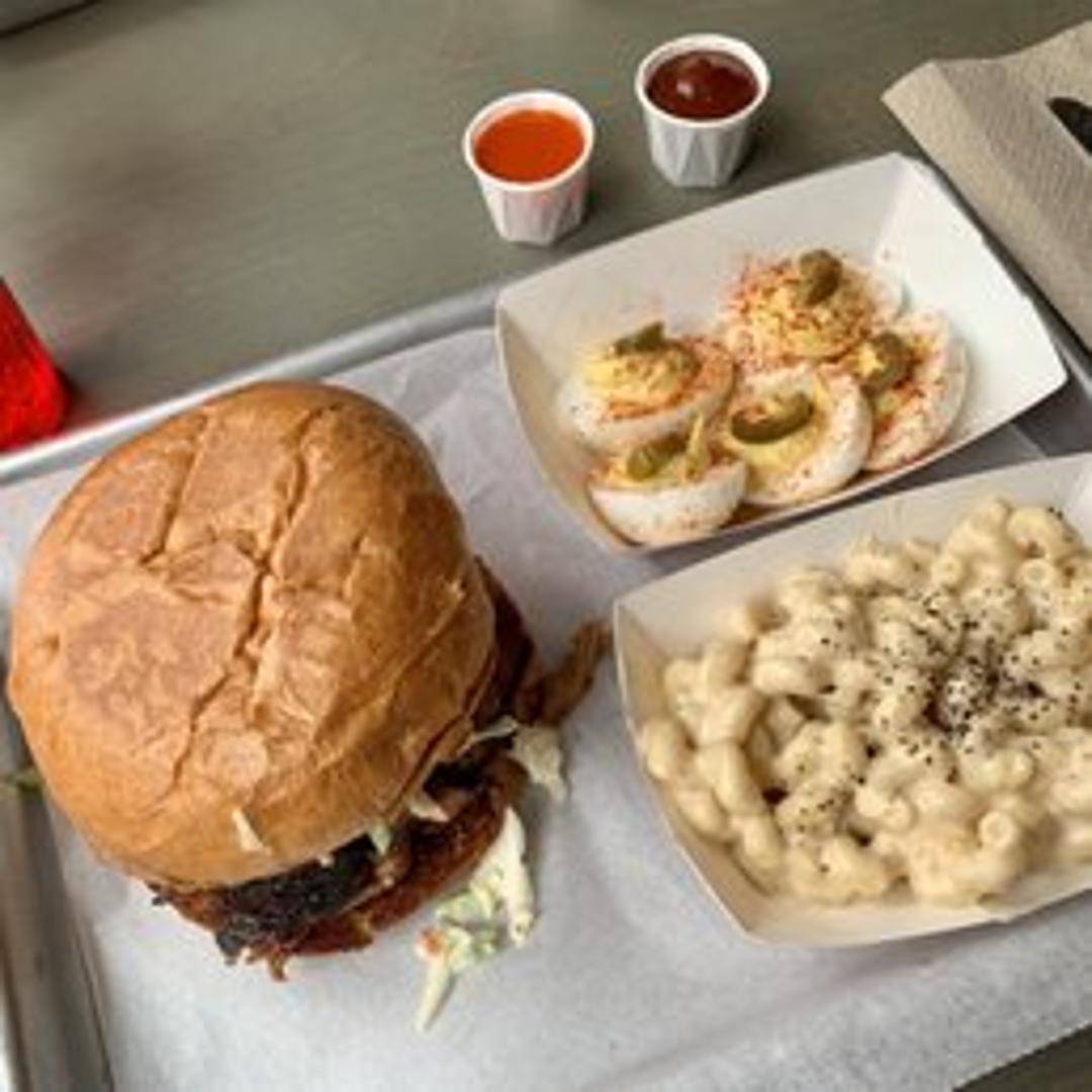 Slow-smoked pulled pork piled high on a toasted bun with your choice of sauce and toppings.