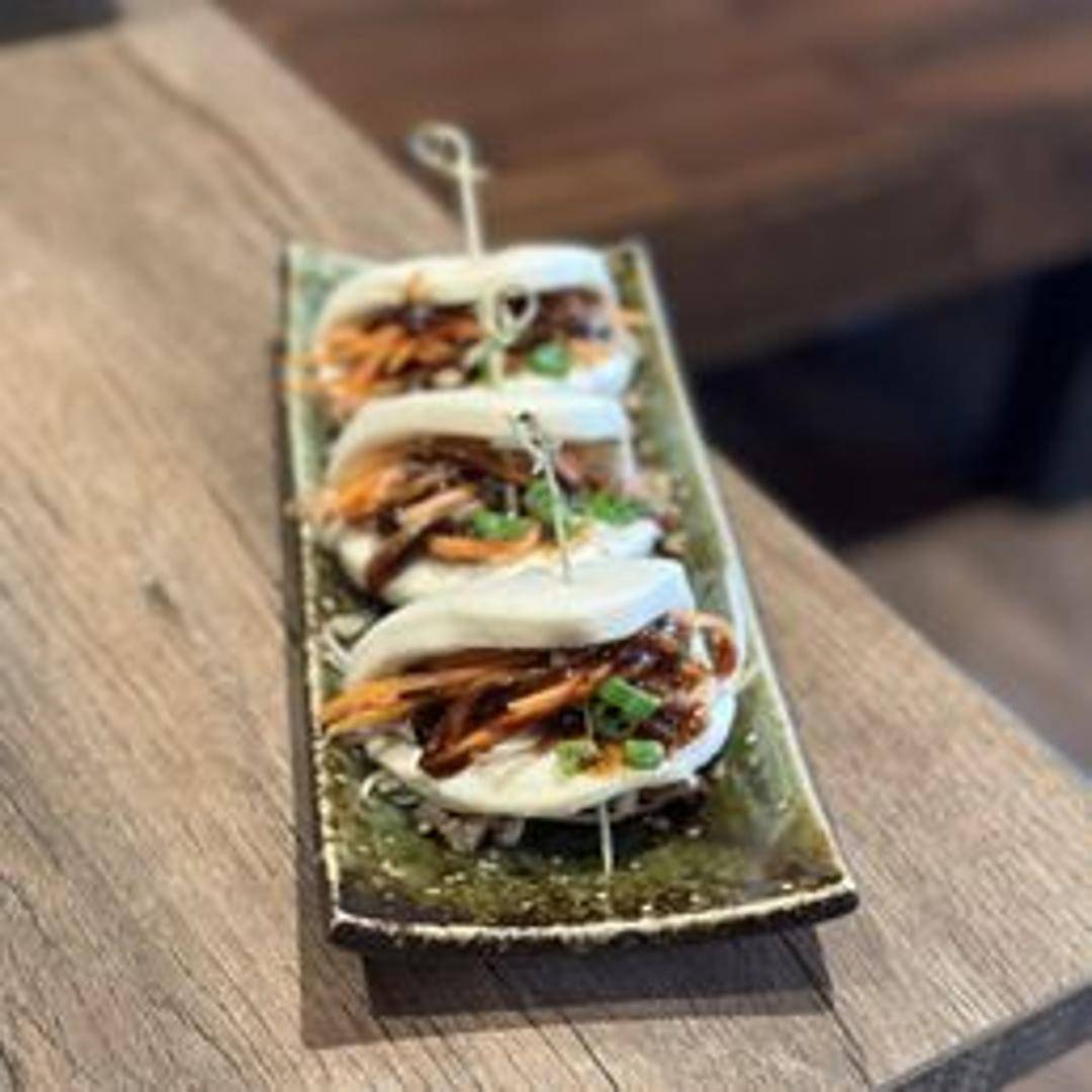 Two fluffy, steamed bao buns filled with your choice of Korean BBQ pork belly, crispy fried chicken, or glazed tofu. Topped with pickled vegetables and a drizzle of spicy mayo.