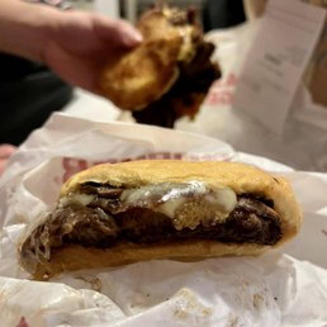 A juicy, smashed burger topped with sauteed crimini mushrooms, aged Swiss cheese, truffle mayo, and crispy fried onions, served on a toasted artisan bun.