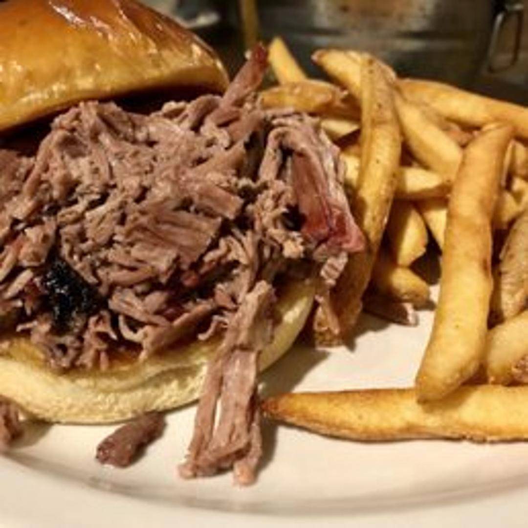 Tender, slow-smoked brisket piled high on a toasted bun. Served with your choice of BBQ sauce and a side of coleslaw.