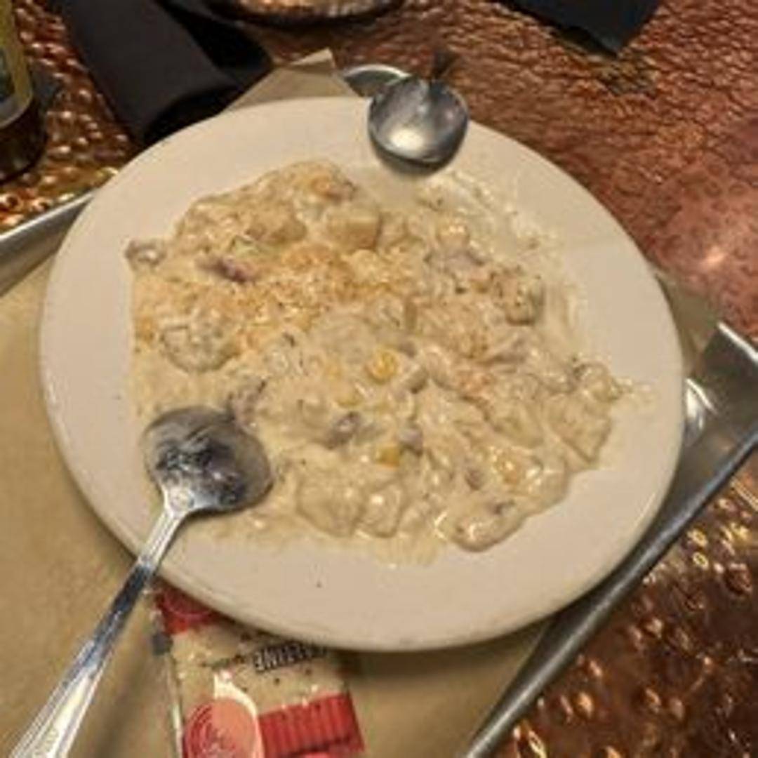 A hearty and creamy soup filled with tender chicken, sweet corn, potatoes, and a blend of savory spices. A comforting and flavorful choice.