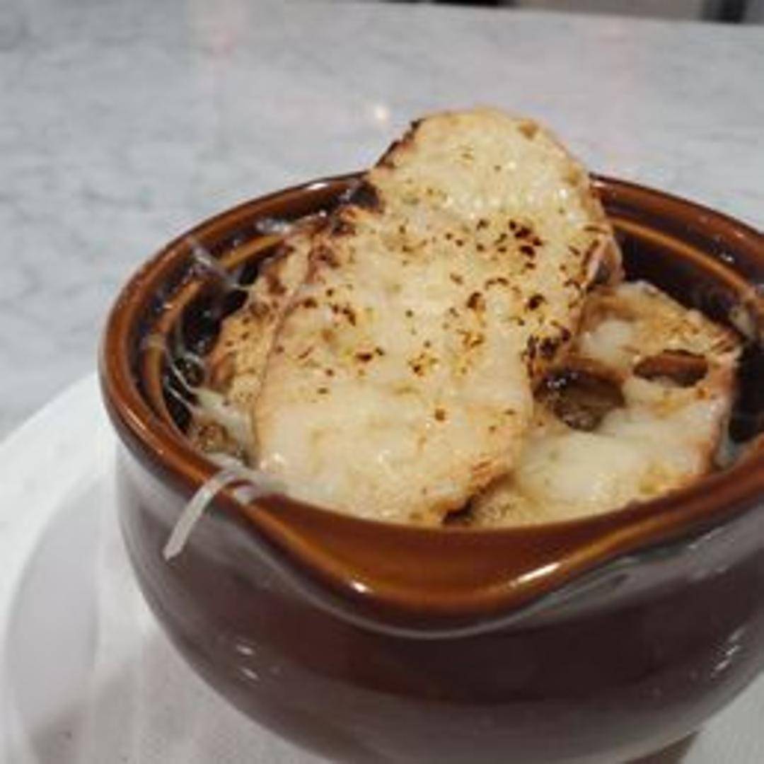 Indulge in our rich and comforting French Onion Soup, a timeless classic made with slowly caramelized sweet onions simmered in savory beef broth. Topped with a crusty crouton and a generous layer of bubbling, melted Gruyère cheese, baked to perfection.