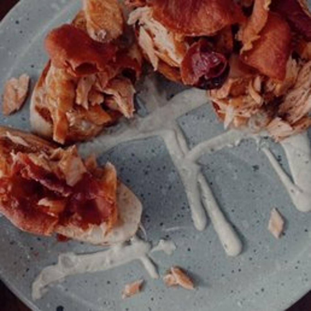 Delight in our elegant Salmon Crostinis, featuring thinly sliced, delicate smoked salmon atop perfectly toasted baguette slices. Garnished with a dollop of creamy dill cream cheese and a sprinkle of fresh capers, offering a burst of sophisticated flavor in every bite.