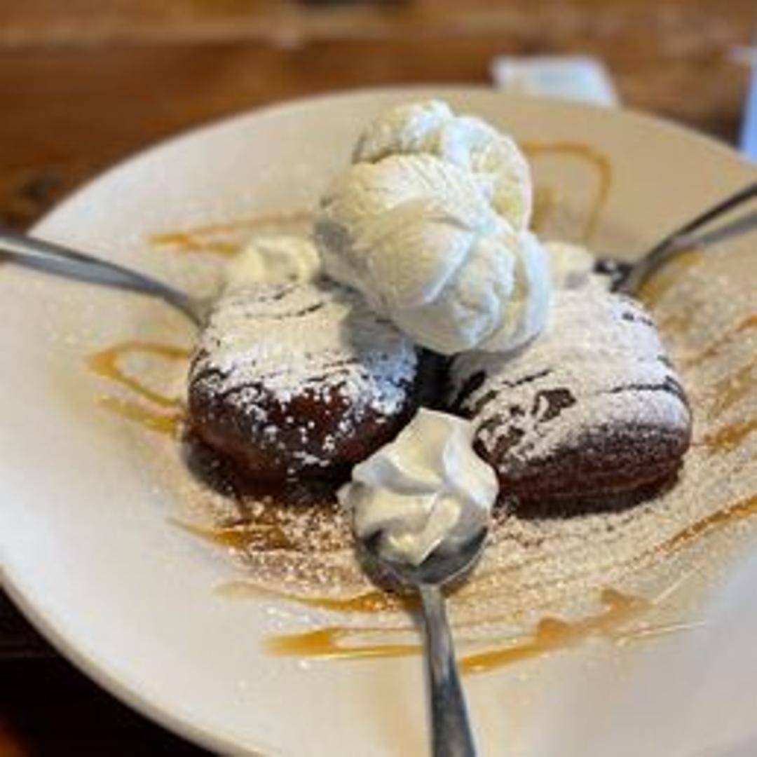 Freshly made beignets, deep-fried and dusted with powdered sugar. A light and sweet treat to finish off your meal.