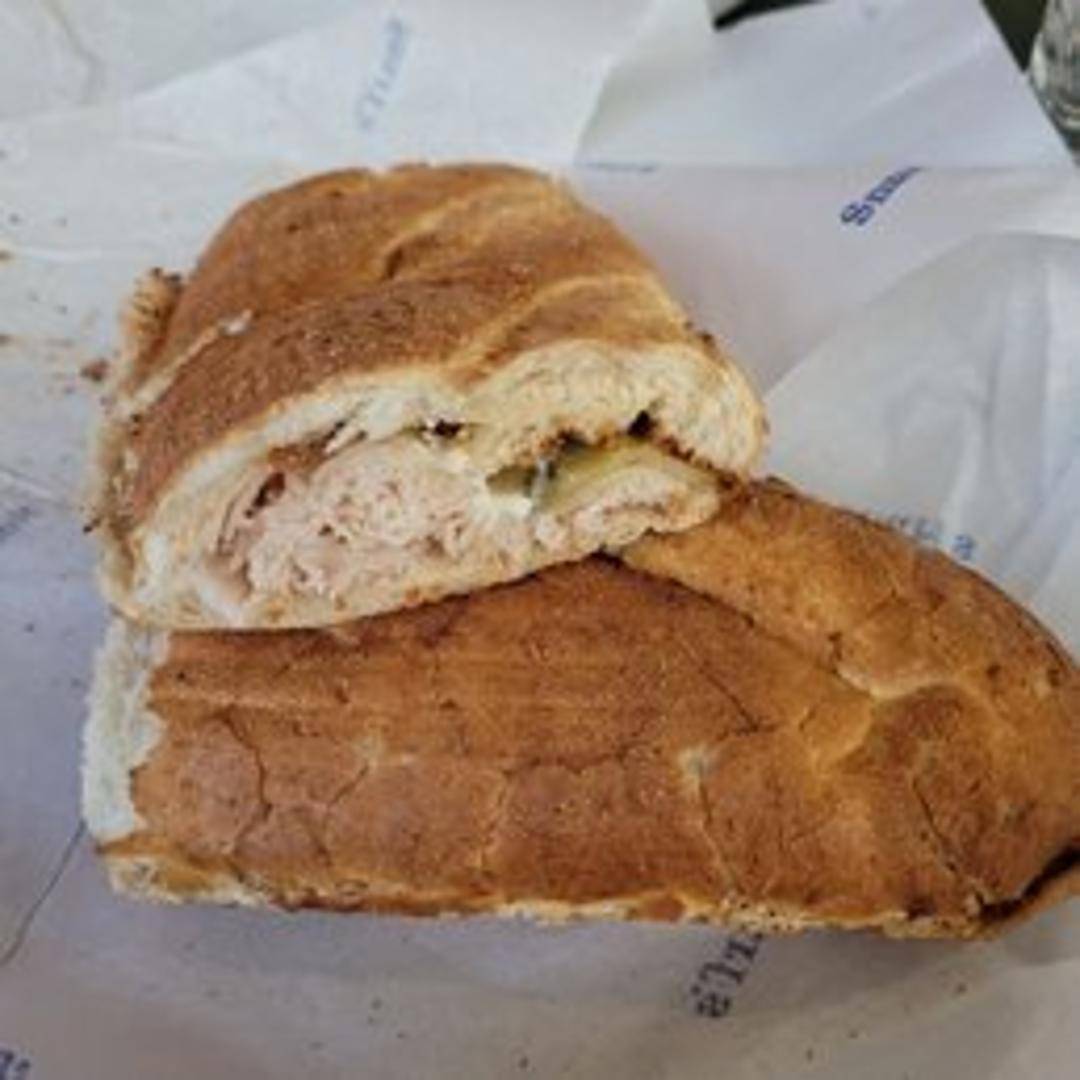 Sliced turkey breast, Swiss cheese, lettuce, tomato, onion, and your choice of dressing on a toasted Snarf's roll.