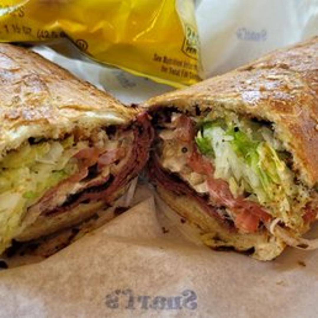 Generous portions of flavorful pastrami complemented by melted Swiss cheese and your selection of toppings on your choice of bread.