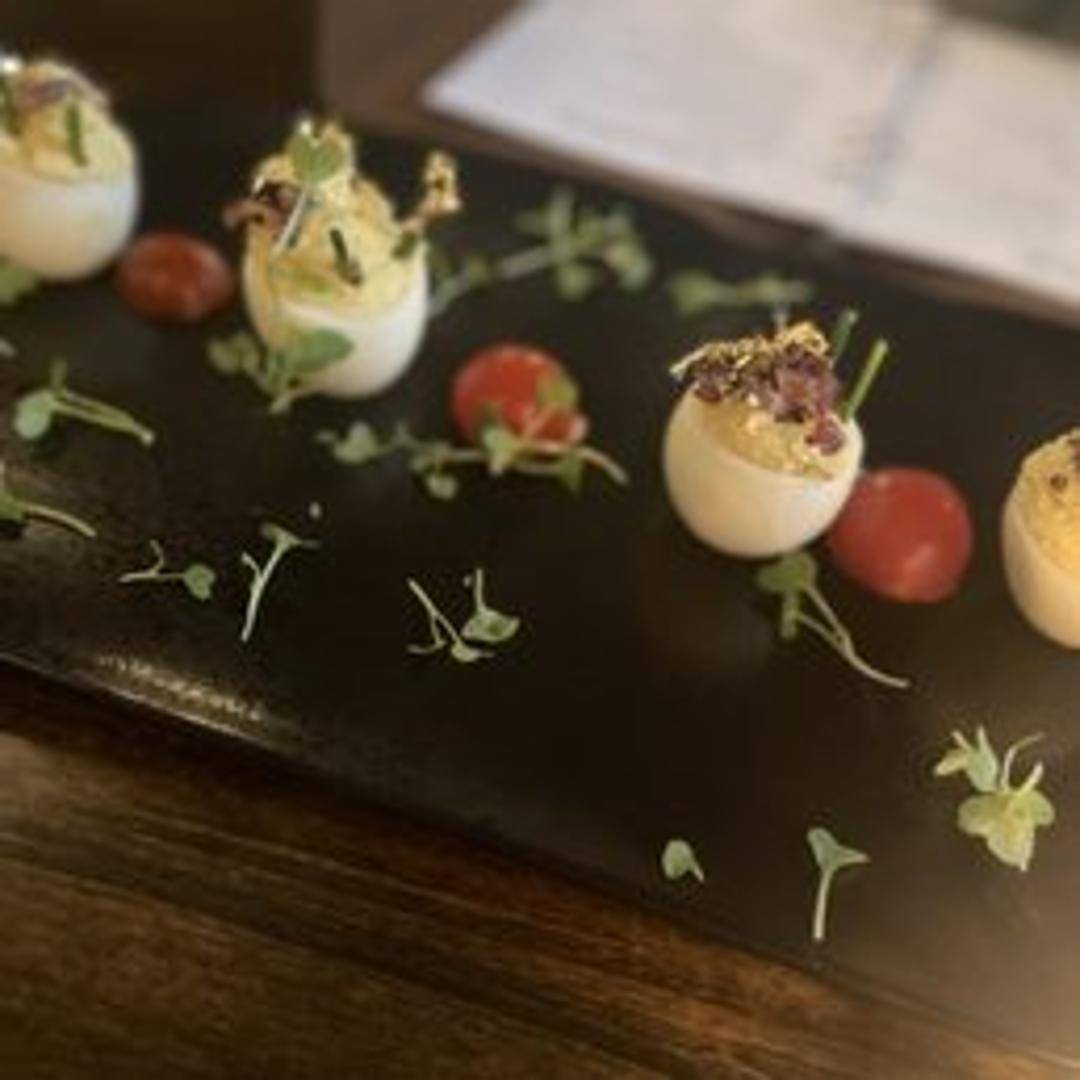 A refined take on a timeless classic, our Deviled Eggs are crafted with precision and premium ingredients. Each half features a velvety, perfectly seasoned yolk filling, whipped to a creamy consistency with a delicate balance of savory spices and subtle tang. Garnished thoughtfully, these elegant bites offer a delightful burst of flavor and a sophisticated start to your dining experience at SOB Steakhouse.