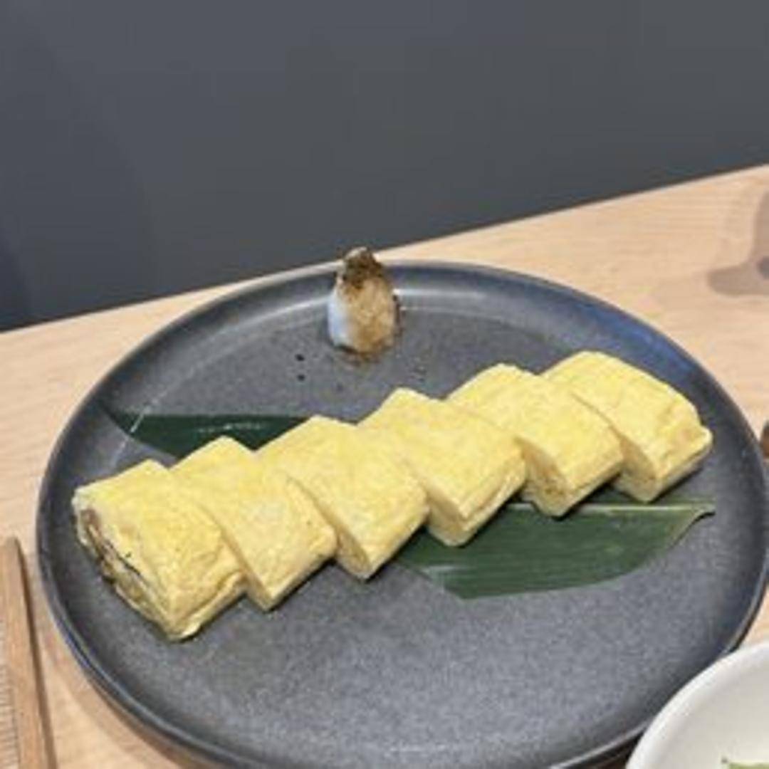 A traditional Japanese rolled omelet, delicately flavored with dashi broth. This Kyoto-style Dashimaki is known for its light, fluffy texture and subtle umami flavor, showcasing the high-quality dashi used in its preparation.