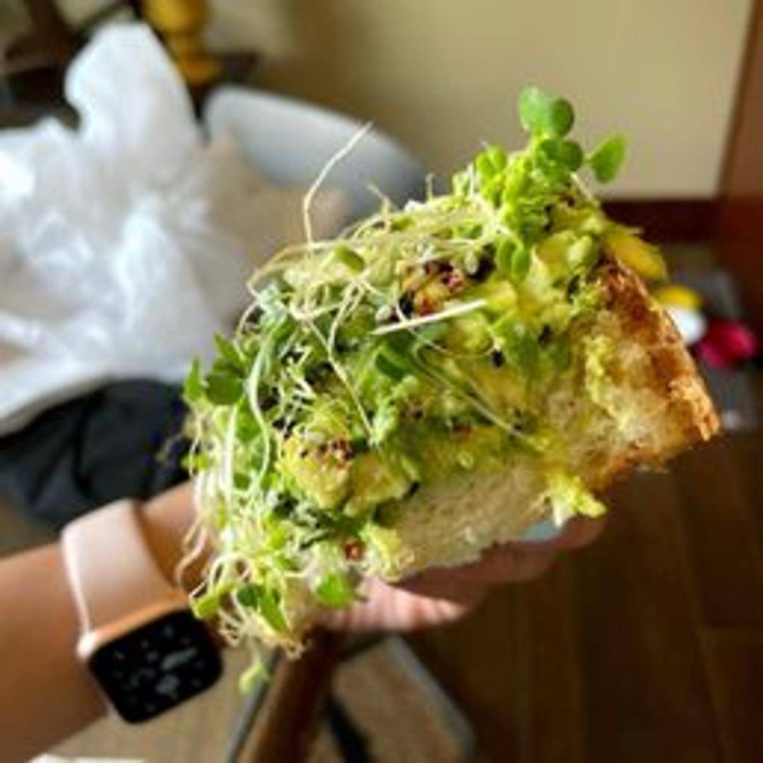 Toasted artisan bread topped with fresh avocado, sea salt, and red pepper flakes. Add-ons such as everything bagel seasoning, a fried egg, or sriracha are often available.