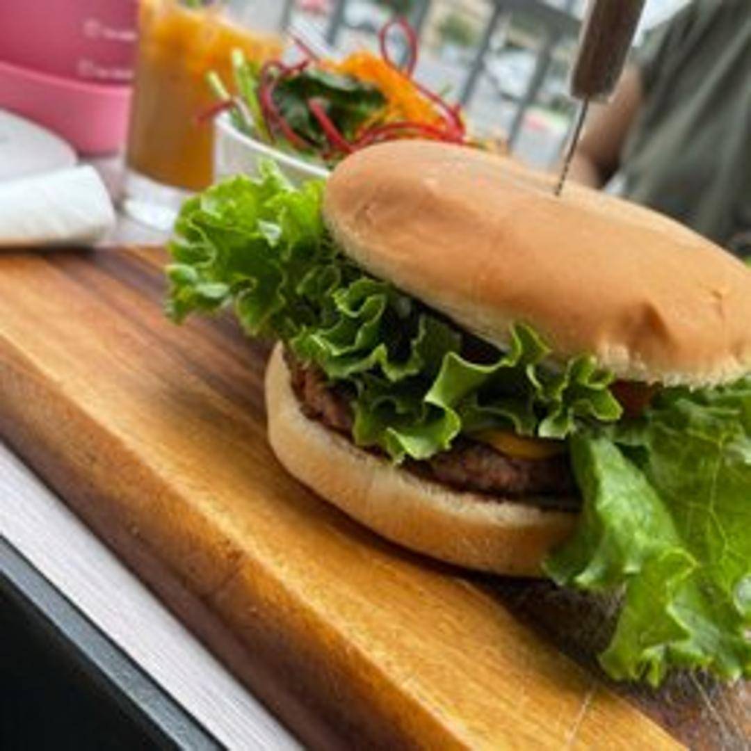A juicy and flavorful plant-based Impossible Burger patty served on a toasted bun with lettuce, tomato, onion, and your choice of condiments.