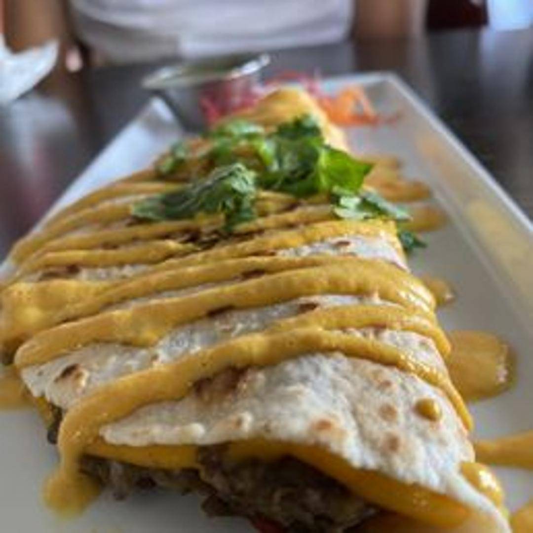 Warm, grilled tortilla filled with savory lentil mixture, melted vegan cheese, and your choice of toppings. Served with a side of salsa and vegan sour cream.