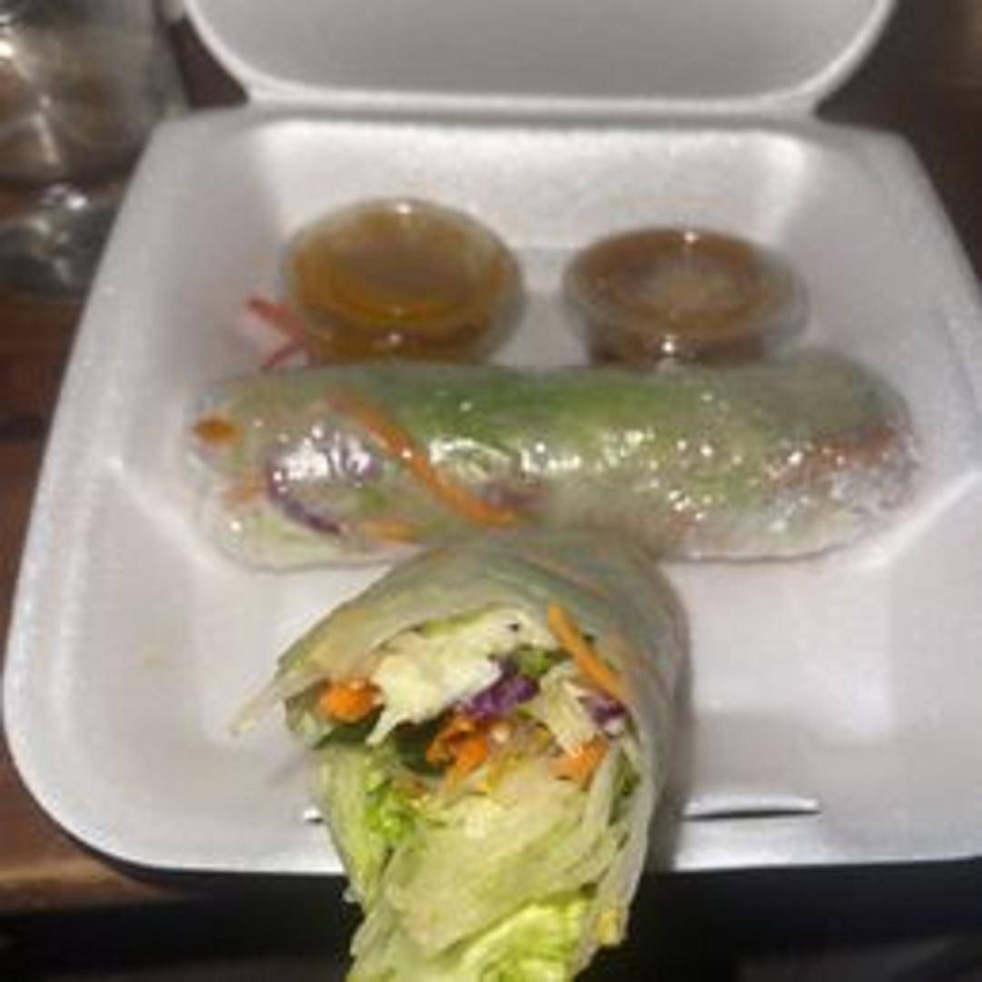 Fresh rice paper rolls filled with vermicelli noodles, shrimp or tofu, lettuce, carrots, cucumbers, and cilantro. Served with a peanut dipping sauce.