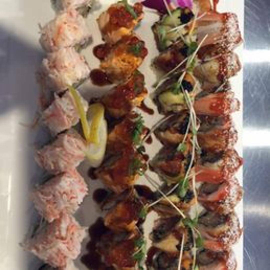 Crispy shrimp tempura rolled with rice and nori seaweed, often accompanied by cucumber or avocado. Served with tempura sauce.