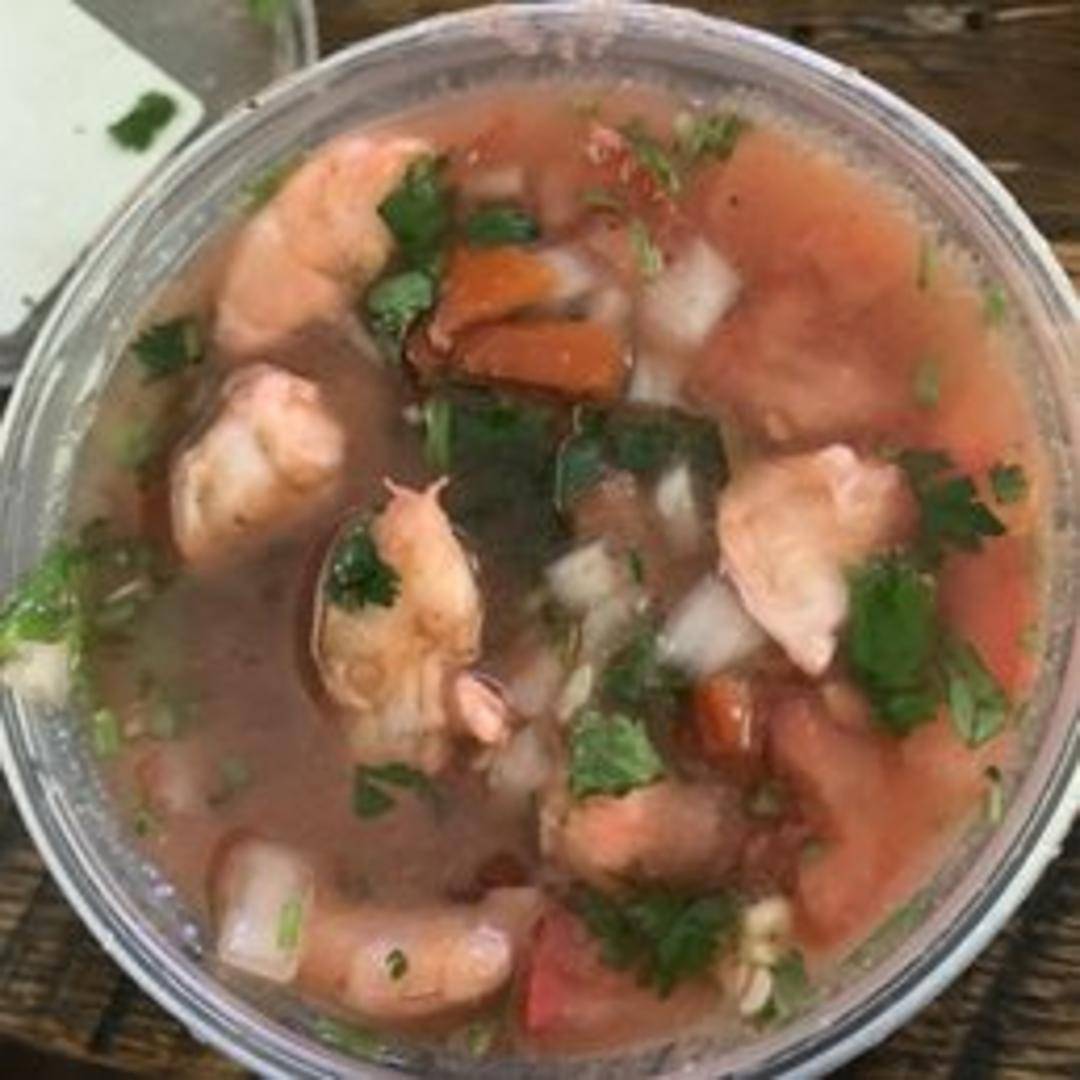 Fresh seafood (typically shrimp or fish) marinated in lime juice with onions, tomatoes, cilantro, and chili peppers. Served chilled with tortilla chips or tostadas.