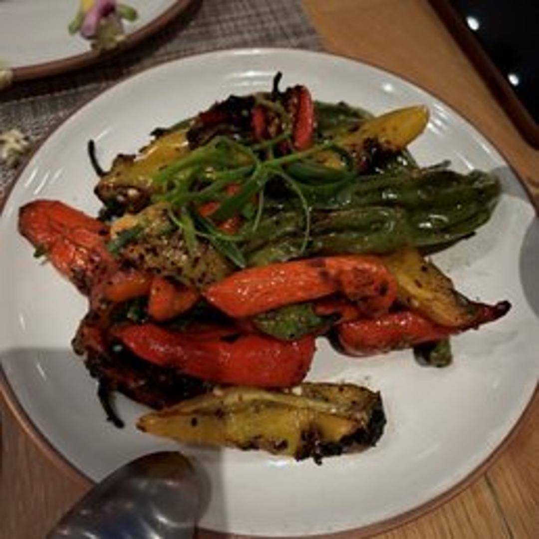 Discover the delightful intrigue of Fire Roasted Shishito peppers. These slender, mild green peppers are kissed by flame, imparting a subtle smokiness and a charred sweetness that beautifully highlights their delicate flavor. With a playful hint of occasional spiciness, they make for an exciting and addictive appetizer.