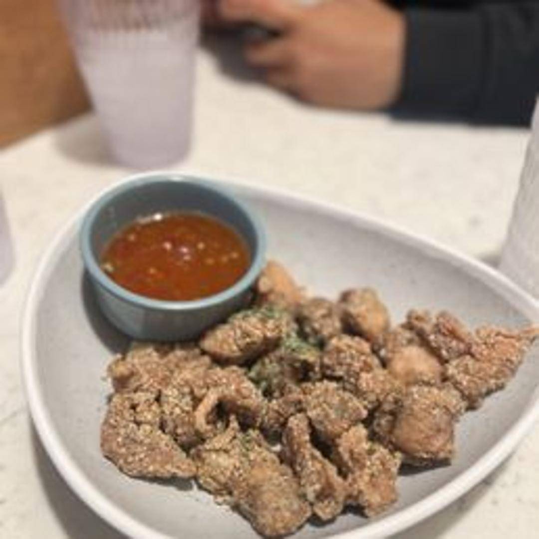 Bite-sized pieces of chicken, breaded and fried to a golden crisp, perfect for snacking or as a side dish.