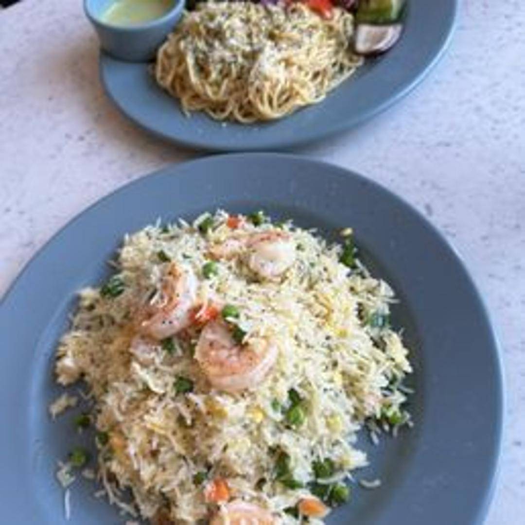 Classic fried rice stir-fried with succulent shrimp, eggs, peas, carrots, and other flavorful ingredients.