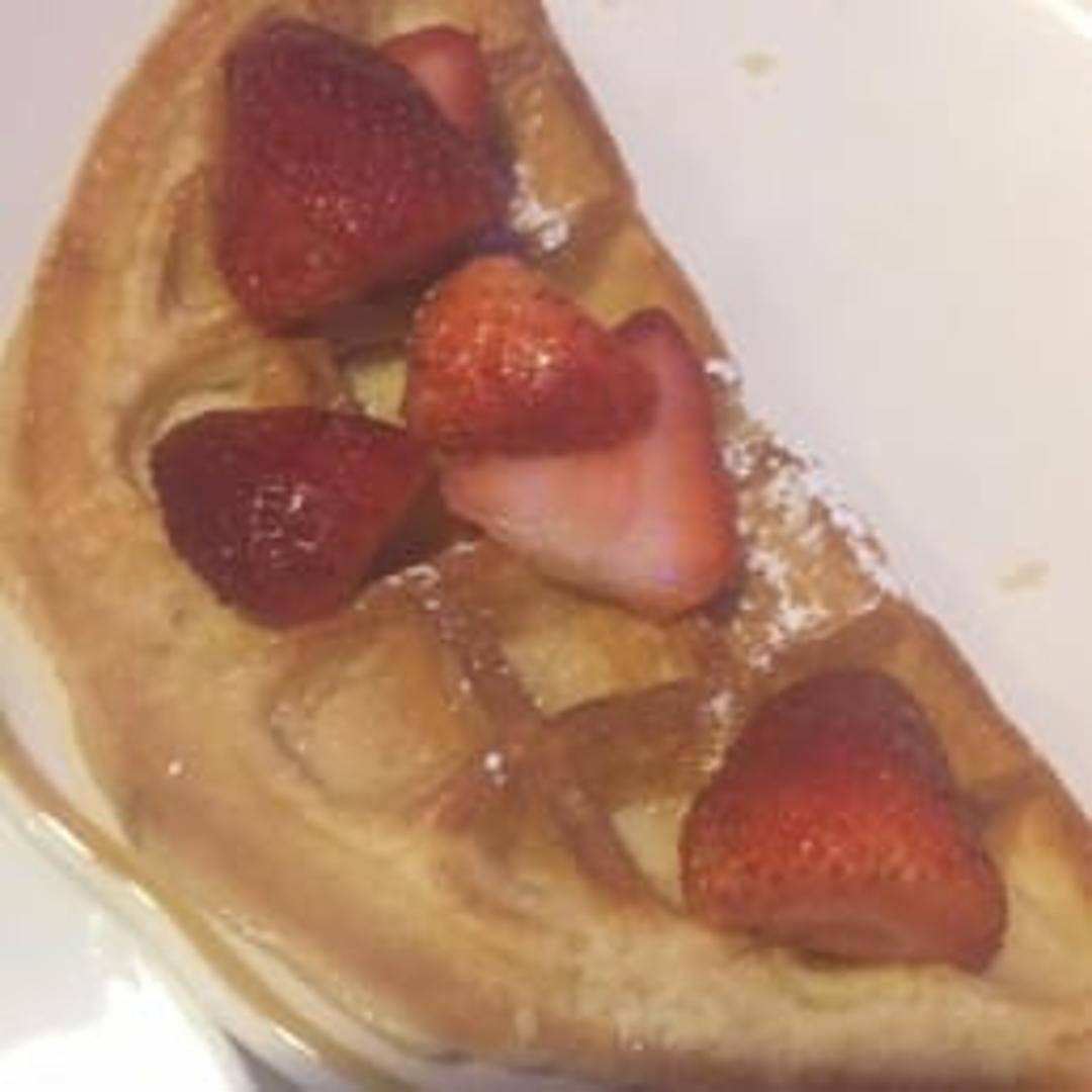A classic Belgian waffle, cooked golden brown and crispy on the outside, light and fluffy on the inside. Perfect for breakfast, brunch, or a sweet treat any time of day. Served hot and fresh, ready to be topped with your favorite additions like syrup, fruit, whipped cream, or chocolate sauce.