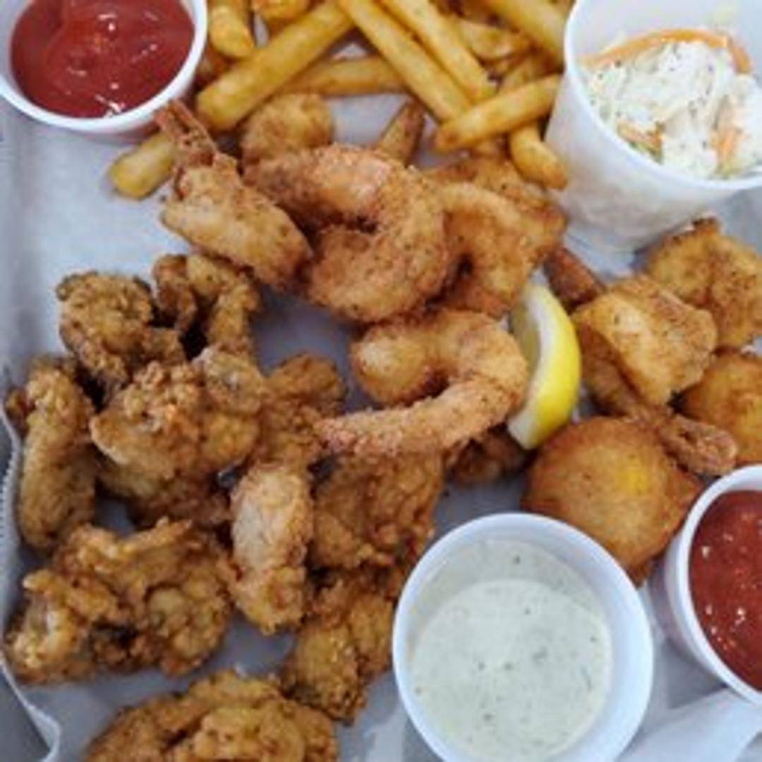 Crispy, golden-brown fried shrimp, lightly battered and seasoned to perfection. Served with your choice of dipping sauce, such as cocktail sauce, tartar sauce, or remoulade. Available in various portion sizes.