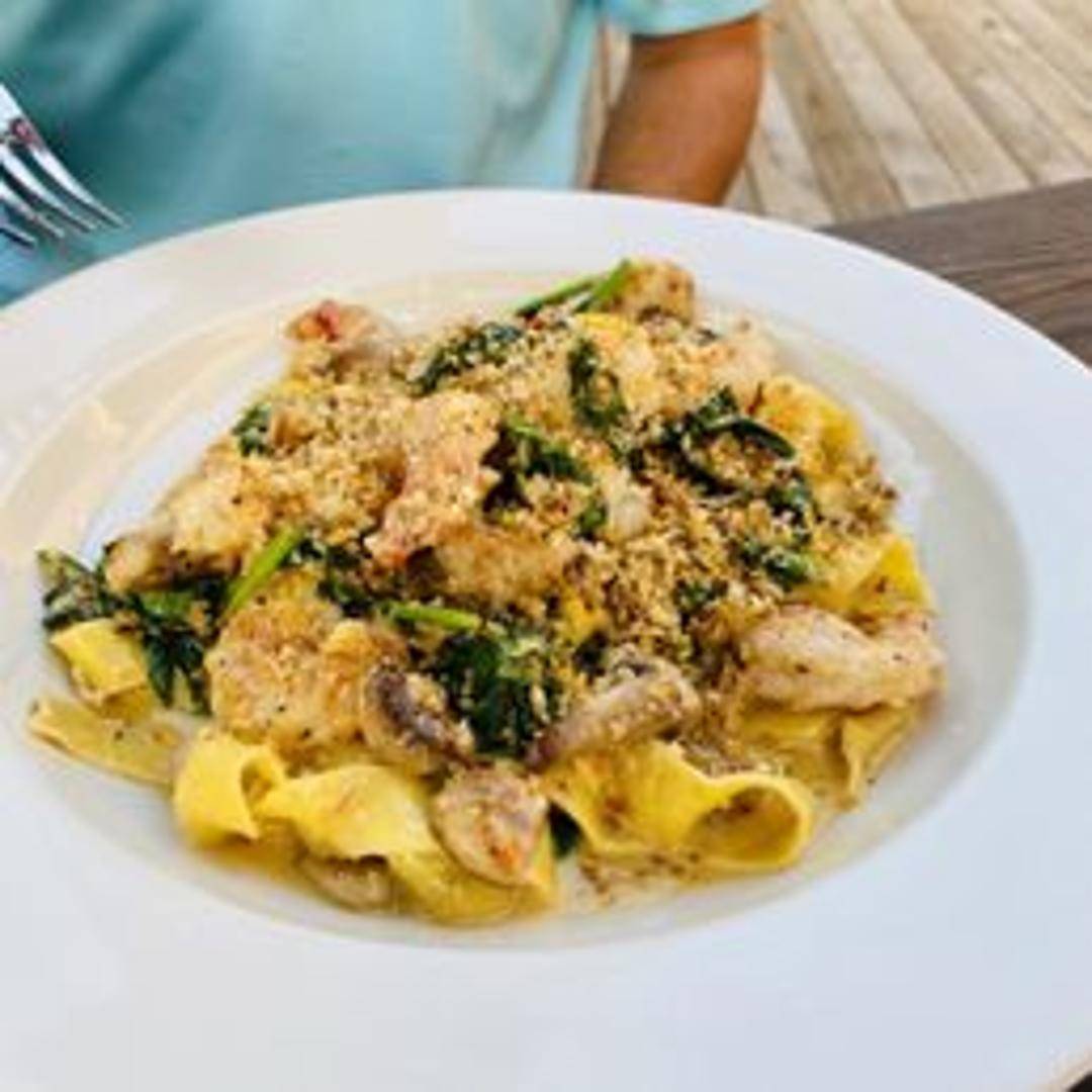 Penne pasta tossed in a creamy Cajun sauce with sauteed shrimp, bell peppers, and onions. Garnished with parmesan cheese and fresh parsley.
