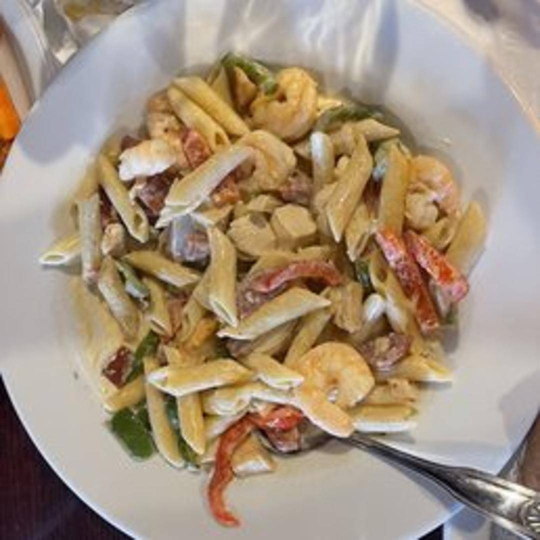A vibrant fusion of Southern and Italian comfort. Tender pasta is tossed in a rich, spicy Creole sauce brimming with succulent shrimp, savory chicken, and spicy Andouille sausage, along with the classic trio of bell peppers, onions, and celery. A hearty and flavorful dish that brings the taste of Louisiana to your plate.