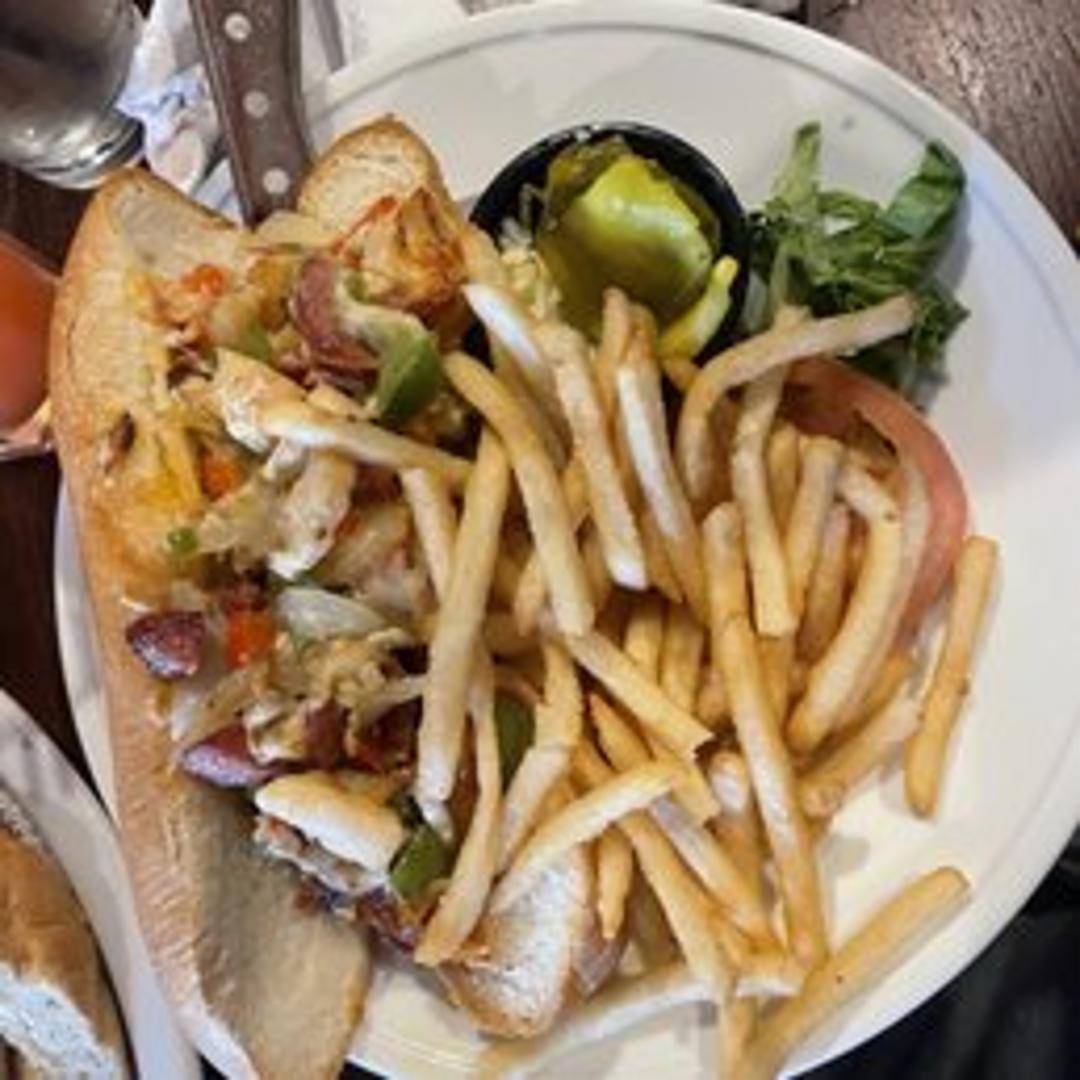 An innovative twist on a classic, combining the beloved Philly cheesesteak with the bold flavors of jambalaya. Tender, thinly sliced chicken and spicy Andouille sausage are griddled with bell peppers and onions, seasoned with authentic Creole spices, and smothered in melted provolone cheese, all served on a toasted hoagie roll.