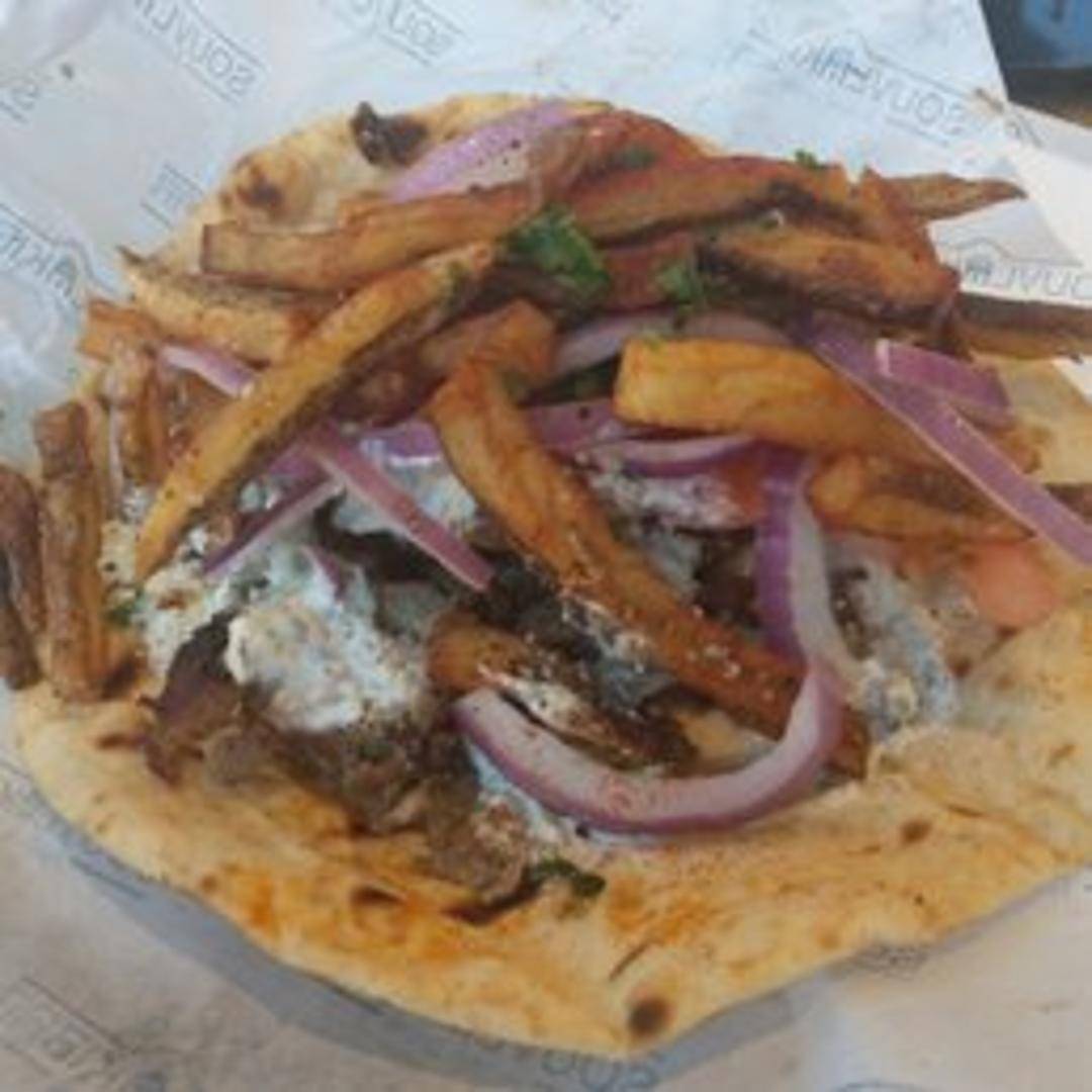 Experience the classic Greek Yeero, featuring thinly sliced, seasoned meat (typically pork or chicken) cooked on a vertical spit until perfectly tender and juicy. Served traditionally wrapped in warm pita bread with fresh tomatoes, onions, and a generous dollop of creamy tzatziki sauce.