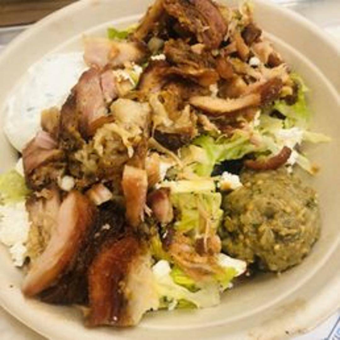 A customizable and wholesome meal in a bowl, designed for modern appetites. This bowl features a base of your choice, topped with a selection of fresh Mediterranean ingredients, savory proteins, vibrant vegetables, and authentic Greek sauces, offering a deconstructed and delicious Greek experience.