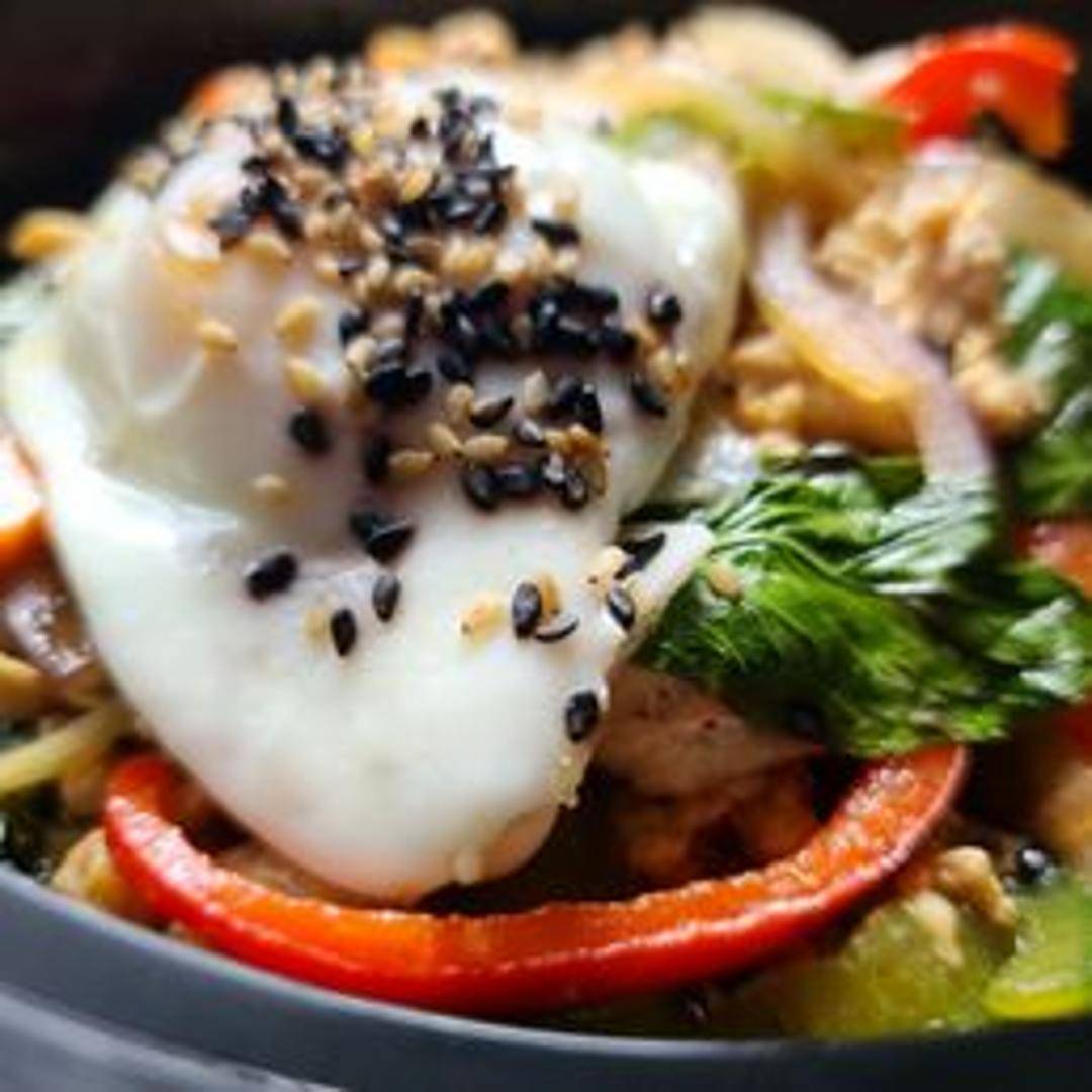 Savor the intense flavors of Kaw Pow, a quintessential Thai stir-fry. Made with your choice of minced meat, fresh holy basil, fiery chilies, and garlic, it delivers a fragrant, spicy, and savory punch, often enjoyed over rice with a fried egg.