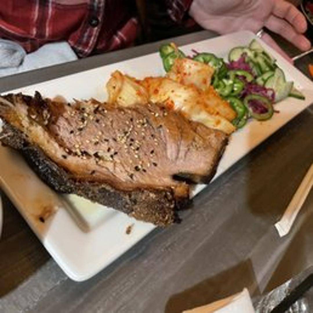 Experience the authentic flavors of Korea with our Pork Shoulder Bossam, a traditional dish featuring succulent, slow-cooked pork shoulder. Each tender slice is carefully prepared to achieve a melt-in-your-mouth texture and rich, savory taste. Our Bossam is typically served with crisp, fresh lettuce wraps, pungent garlic slices, spicy ssamjang (a Korean dipping sauce), and fermented shrimp sauce (saeujeot) for a customizable and delightful dining experience. It's a perfect dish for sharing, offering a harmonious blend of textures and bold Korean spices that are both comforting and incredibly satisfying.