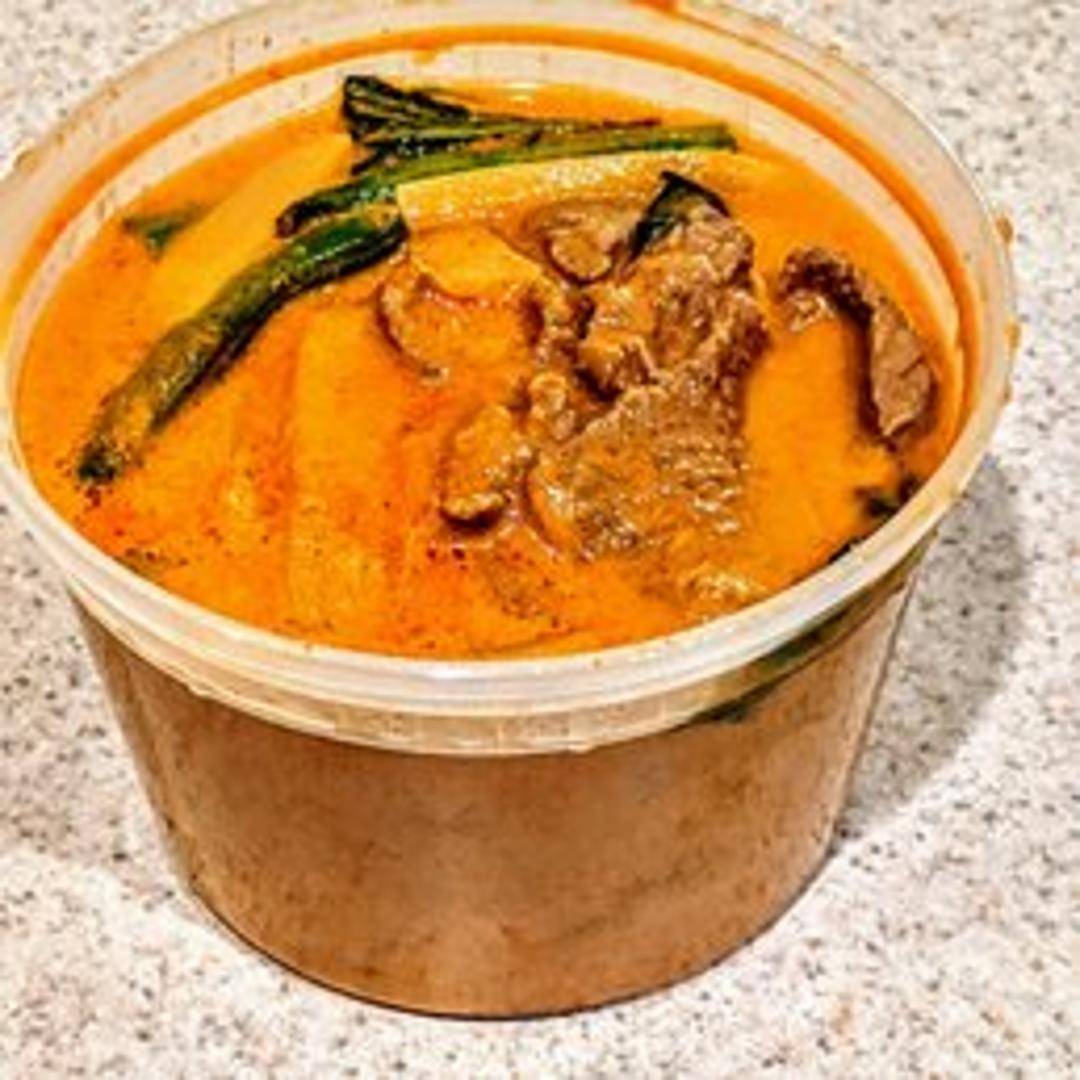A classic Thai delight, our Red Curry features a rich, creamy coconut milk base infused with fragrant red chili paste. Simmered with tender bamboo shoots, vibrant bell peppers, fresh basil, and your choice of protein, it offers a harmonious blend of spicy, sweet, and savory notes.